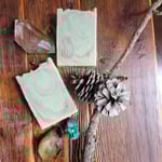 Colored using Chlorella powder, Spirulina powder, and cocoa powder. Scented with Texas cedar and Scotch pine essential oil.